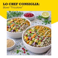 La quinoa tricolore è perfetta quando vuoi un piatto più interessante anche nella consistenza: la parte bianca resta più delicata, mentre rossa e nera danno una texture più sostenuta e leggermente croccante. È ideale per bowl e insalate complete: abbinala a verdure grigliate o al forno, legumi (ceci, lenticchie), avocado, semi e un dressing agrumato con limone o lime. Funziona benissimo anche in chiave mediterranea con pomodorini, olive, capperi ed erbe fresche, oppure in versione più etnica con spezie (curry, cumino, paprika) e salse leggere.