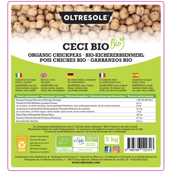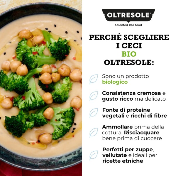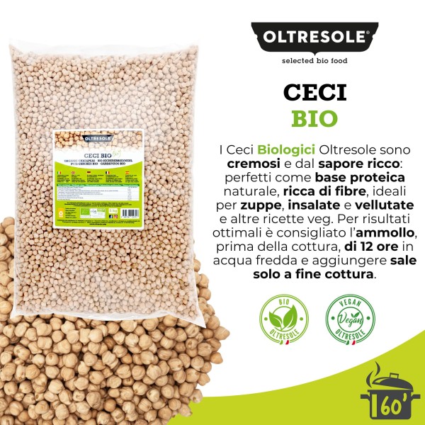 I ceci biologici Oltresole sono selezionati da coltivazioni certificate e controllati con cura per garantire purezza, gusto autentico e qualità costante. Sono un ingrediente semplice e versatile, perfetto per chi segue un’alimentazione vegetariana o vegana, ma anche per chi vuole arricchire la dispensa con una base naturale da usare in tantissime ricette, dalle preparazioni tradizionali a quelle più moderne.