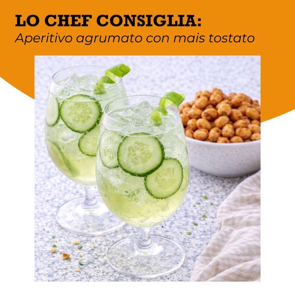 Il mais tostato gigante ha una croccantezza più spessa e strutturata rispetto al mais snack tradizionale. Questo lo rende ideale accanto a drink secchi, birre artigianali, vino bianco fresco e cocktail agrumati. Il suo sapore sapido e deciso bilancia molto bene bevande con note amare o acidule.