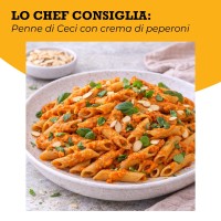 Le penne di ceci hanno un sapore pieno e leggermente rustico, con una nota tipica del legume che le rende particolarmente adatte a condimenti strutturati. Si abbinano molto bene a pesti aromatici, creme di frutta secca, sughi di pomodoro concentrati e ragù vegetali, dove la loro superficie ruvida trattiene perfettamente il condimento.