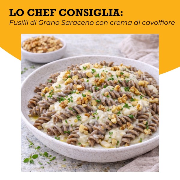 Un primo piatto strutturato e aromatico, dove la rusticità del saraceno incontra la cremosità naturale del cavolfiore.