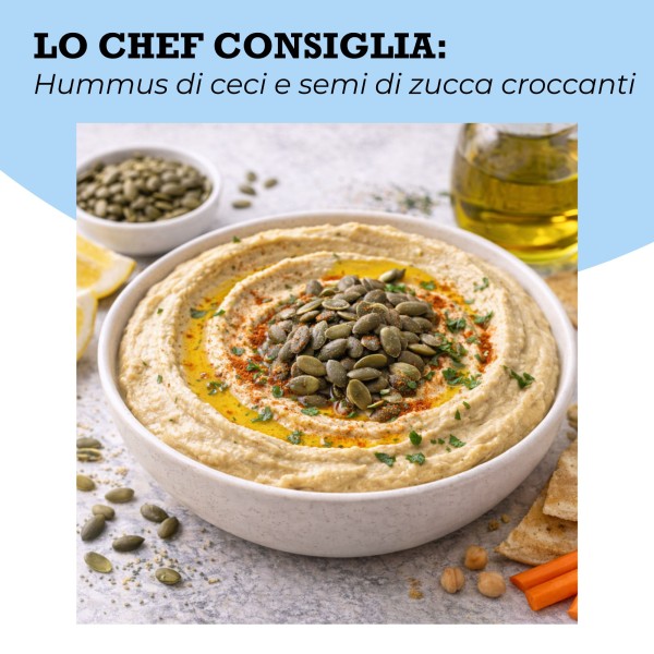 Una crema vegetale ricca e vellutata, perfetta come antipasto o per un aperitivo sfizioso. I semi di zucca bio aggiungono una nota tostata e una piacevole croccantezza, oltre a preziosi nutrienti.
